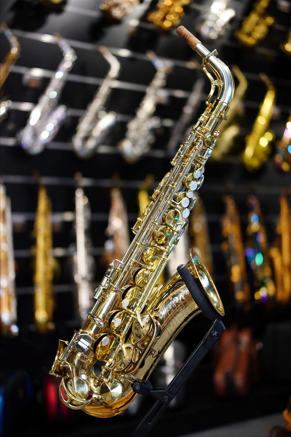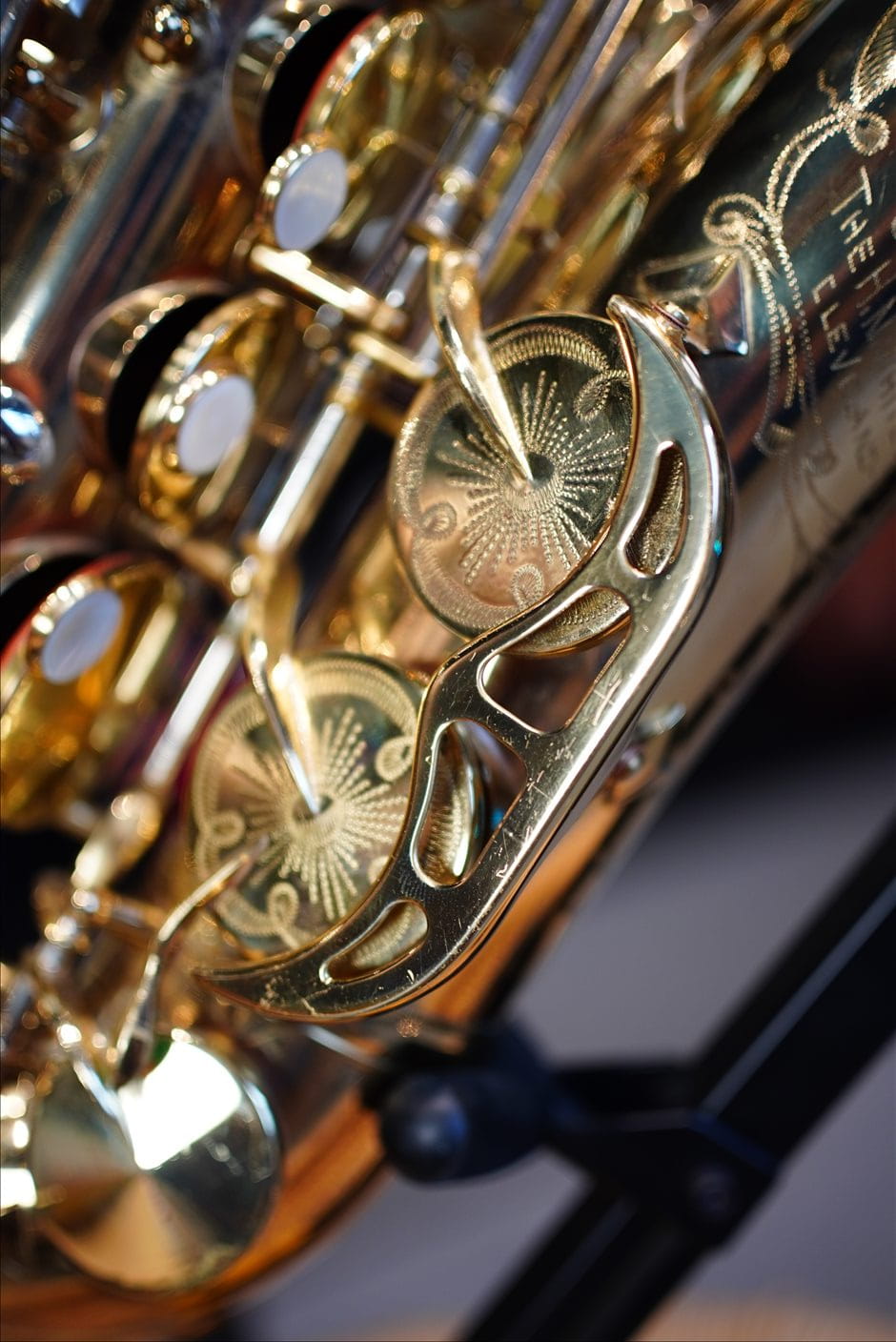 This example is fitted with a silver neck, which adds even more depth, clarity, and a distinctive “American” edge to the sound. An additional highlight is the set of engraved key cups, emphasizing the prestigious and unique character of this model.