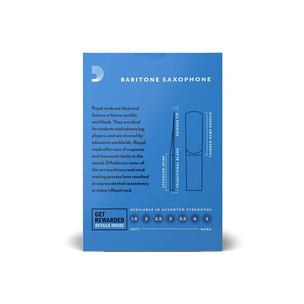 Designed for advancing players, Rico Royal offers an even response across the registers and more clarity in the sound.