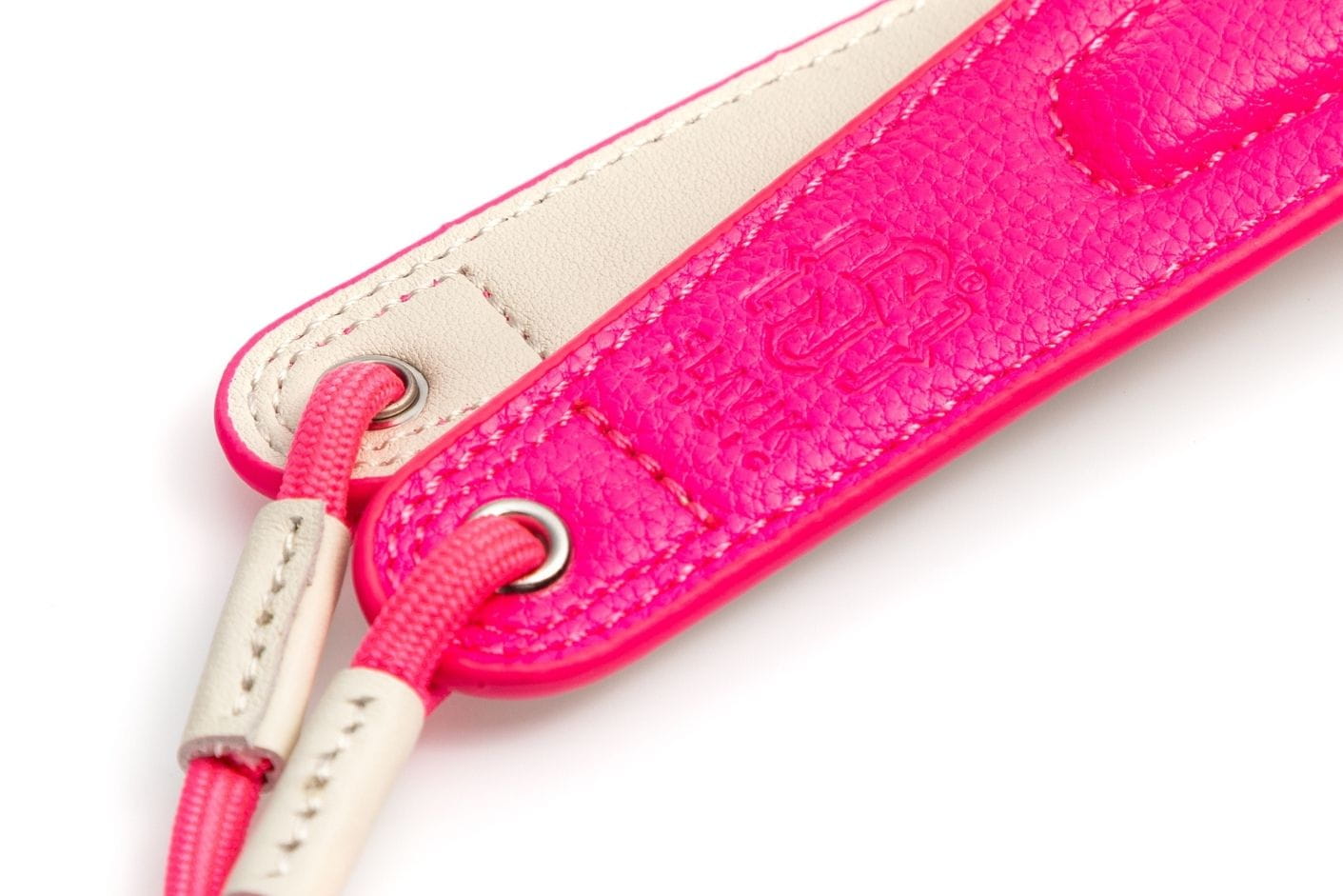 **VERSION**: Neon Rose color with gold adjuster and hook, bottom white leather