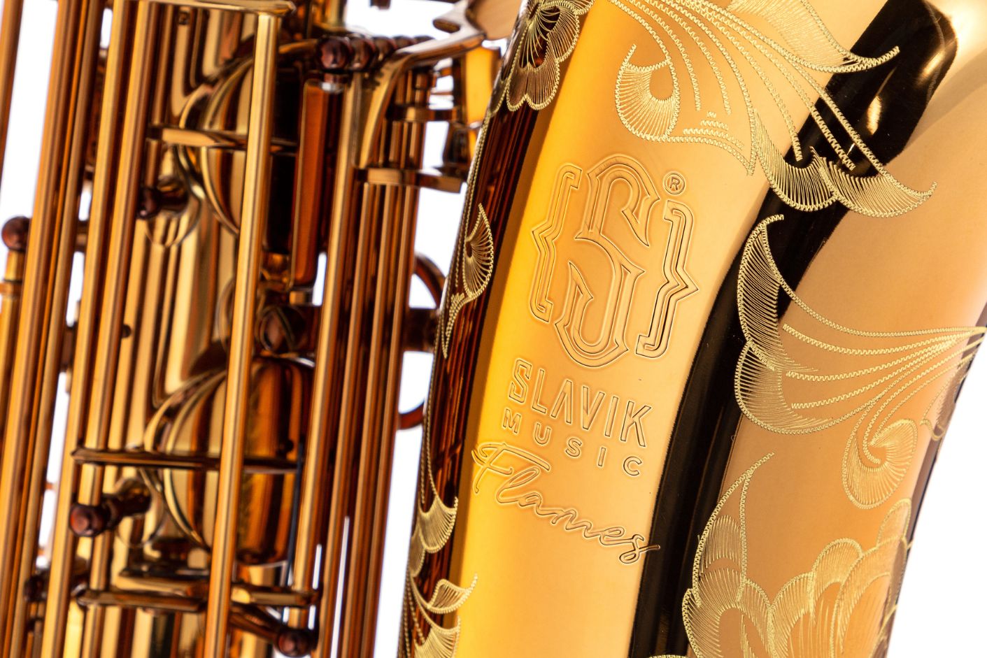 Slavik Music "FLAMES" is an incredibly beautiful and modern baritone saxophone, designed to give you everything you need.