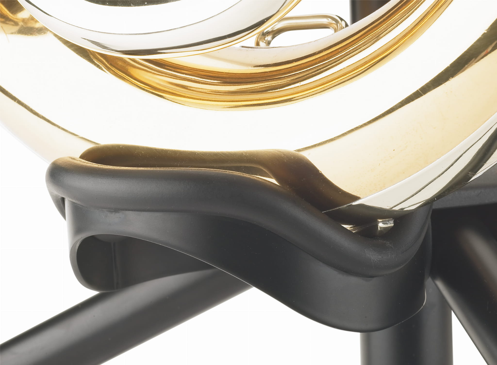 Funkcjonalny wspornik instrumentu zawiera stabilny metalowy wspornik owinięty szczególnie miękkim materiałem w celu ochrony korpusu instrumentu.